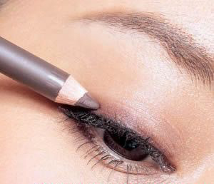 Step1、先用咖啡色眼线笔沿着睫毛根部画眼线,眼线不需要特别上扬。