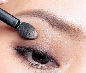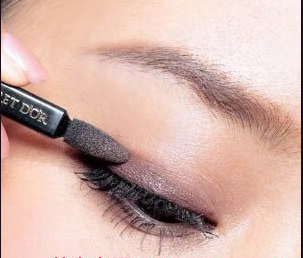 Step2、再用咖啡色眼影叠在眼线上,范围略超过双眼皮摺即可。
