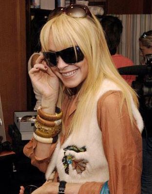 林赛·罗韩(Lindsay Lohan)对迪奥 (Dior) 墨镜是倍爱有佳,纯色的,咖啡的,都显得如此娇嫩,与她金色的迷人长发相衬更加抢眼。