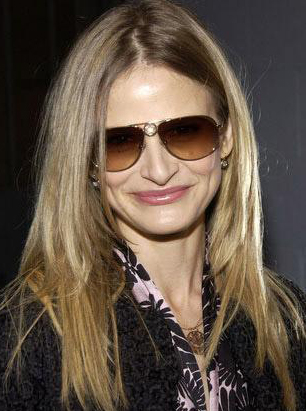 金色直发遮盖住部分面庞,渐变色的墨镜与精致的镜架设计巧妙而又美丽,Kyra Sedgwick佩带更为其增添韵味。