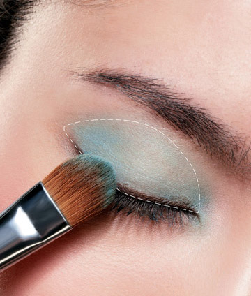 STEP2 :珊瑚褐色之上往眉骨方向晕染海蓝色眼影。