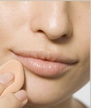 步骤1、用涂完底妆之后的海绵擦拭一下嘴唇周围,模糊嘴唇和其它皮肤之间的界限,调整色调,也可以突出之后涂的口红的颜色。