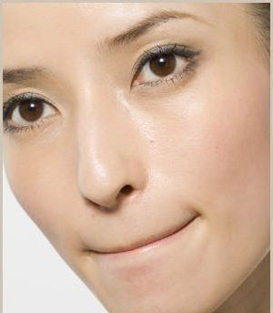 步骤3、抿一抿嘴唇,使涂在下嘴唇的口红涂到上嘴唇,平衡上下嘴唇的颜色。