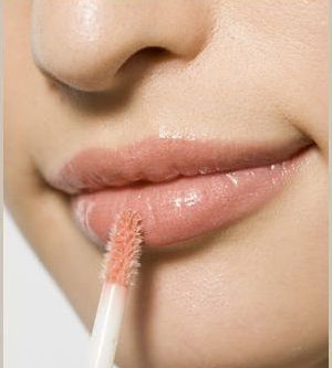 步骤5、在上下嘴唇的中间部分再涂上相同色调的唇彩。最好是带有珠光的唇彩,以增强嘴唇的立体感和色泽感。