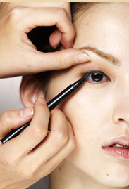 笔做最后加强,画眼头时视线看下、画眼尾时看反方向前方。