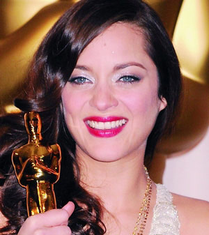 最优雅红唇 Marion Cotillard 作为最佳女演员的获得者,Marion Cotillard除了以精湛的演技折服观众之外,在颁奖礼上更以优雅的妆容征服了所有人。略深的玫瑰色红唇,是整个妆容的亮点,恰到好处地与复古感的大卷发配合,毫不张扬却让人不愿转移视线。Marion Cotillard的眼睛很美,这次她特意选择了银色的眼影,不抢红唇的风头,人们却也无法忘记她闪闪发亮的双眼。