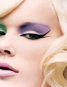 眼妆:追求自然的紫色效果,可选用紫红/淡紫风暴二合一眼影,以及鱼子酱风暴眼线膏。