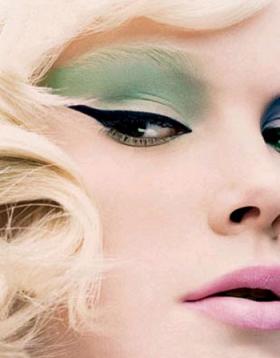眼妆:粉绿色14号眼影、黑色1号眼线液。
