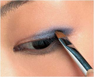2、用紫褐色眼影从眼睑中部开始涂抹