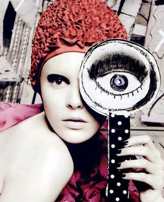 要点:比以往粗一些的眼线,点缀在内眼角的珠光白色眼影,加上浓密的黑色睫毛,秘密地掩饰了眼睛的浮肿。