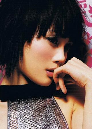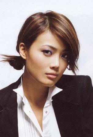 紫色的眼影较好的中和了因为干练的发型和衣着呈现出来的中性感