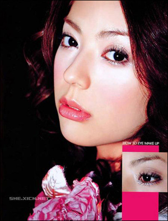 这款粉红色眼妆,突出的是卷翘的睫毛,眼妆似有似无。基本似款裸妆。比较适合美眉清秀、五官突出的柔美女人。