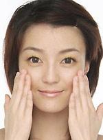 Step4:腮红也要用金色,从笑肌中央斜向上涂到颧骨位置,然后再从下拍打向上。