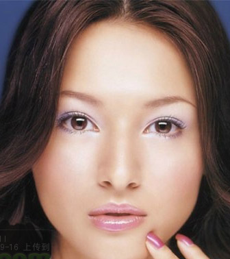 ●腮红不见:杏色或浅粉色腮红从太阳穴至颧骨处涂抹,融于整个脸型中,不要有明显的色彩感和形状感。