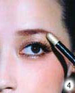 4.使用含有珠光或亮光感的明亮眼影棒,在眉骨突出的地方轻轻抹开,以增添整体眼部的轮廓。