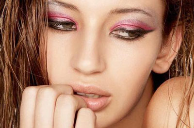 下眼睑用粉色眼影打底,看上去非常甜美鲜嫩
