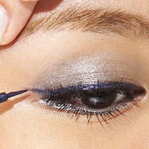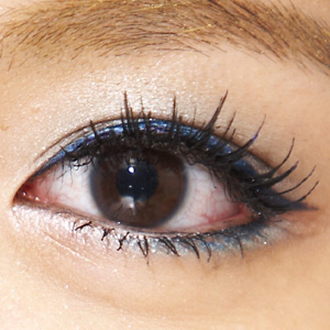 充满亮片感的彩色眼线液最能增加眼睛吸引力,小范围的与眼影搭配使用,眨眼瞬间闪过的晶亮感比大片涂抹更charming~