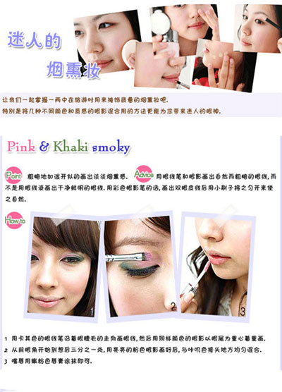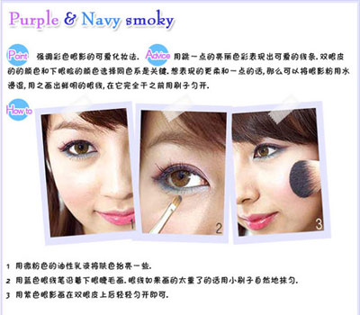 建议:用眼线笔和眼影画出自然而粗略的眼线,而不是用眼线液画出干净鲜明的眼线,用彩色眼影笔的话,画出双眼皮线后用小刷子将之匀开来使之自然。