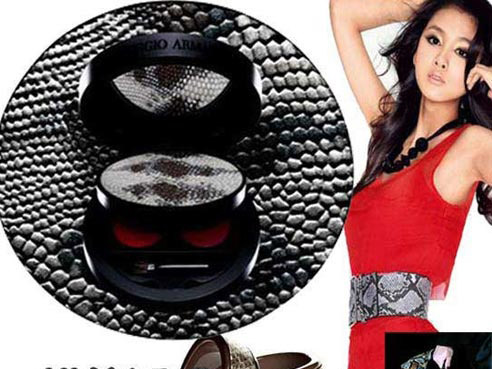 沿袭了时尚界的设计效果,阿玛尼品牌的2008秋冬彩盘也与蟒纹息息相关。除了奢华的银灰色蟒纹盖夺人眼球,彩盘内含犹如蟒蛇纹路的灰褐、闪灰和亮珍珠的三种灰色系渐变质感眼妆以及两款设计师专业设计的迷人丝滑唇膏。逐层的晕染效果满足了日常以及约会等各场合的不同需求,柔雾般的烟熏妆容打造出独特的奢华,实在让女人为之心动。