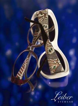 第三、四世纪以马赛克拼成的精美大幅图案,来表达浪漫主义情怀。这与Leiber以浪漫情怀来表现自我的设计理念不谋而合,也是Leiber2008眼镜新品主打风格。镜腿前端镶嵌而成极具色彩鲜明的宝石花纹图案,不失精致而奢华,足以夺人眼球,高贵气质呼之欲出。