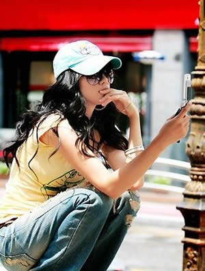 一顶棒球帽,一幅深色看不到眼睛的太阳镜,一身帅气,略带中性的装扮在女人身上体现出来则就尤显得韵味十足,女人的纤细骨感加上酷酷的休闲装扮,帅气可爱到极至。