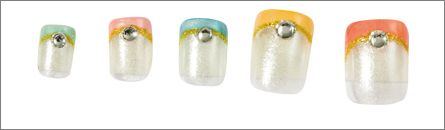 最后,待上述步骤全干时再擦上一层透明色的指甲油,可增加彩绘的固定度,也可使甲片更有光泽感。