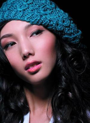 妩媚熟女妆配帅气针织贝雷帽