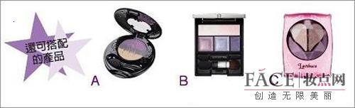 A 绝对要收藏的梦幻眼彩!有如抽象画般的叁色混色眼影,漂亮得让人捨不得使用。(魔幻糖果眼彩#03/ANNA SUI) B 添加隐形珠光能创造出通透的光感,散发出立体光泽。(COFFRET D'OR 3D彩逗眼盒#04/佳丽宝) C 运用浓淡渐层及闪烁光芒变化,创造出明亮高雅的美眼神。(花漾眼影盒#PU-2/LAVSHUCA)