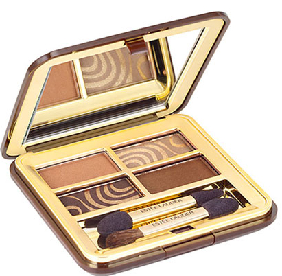 想要肌肤看起来闪耀动人散发出淡淡的金色光辉建议您使用雅诗兰黛全新限量彩妆靡恋巧克力旋彩盘(Creme Caramel Shimmer Powder)。