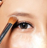 用眼影刷蘸取高光粉涂抹眉峰下方,让眉部看起来更立体。