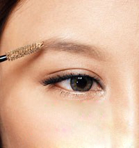 用染眉膏顺着眉毛的生长方向,从下向上涂抹眉头眉毛。
