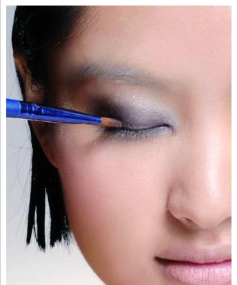 1.银色铺底:用眼影刷蘸一点浅银色眼影粉,轻轻扫过上眼睑,再用余粉扫下眼睑。想要大烟熏又怕太过,就把打底的这层浅色多晕染开去。