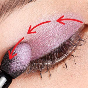 再沾深灰色眼影A,沿着眼窝凹处往前晕染至眼中制造出阴影效果。