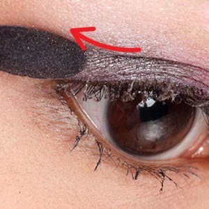 再沾深灰色眼影A,从眼尾后1/2处靠近根部,并往上晕染至眼窝。