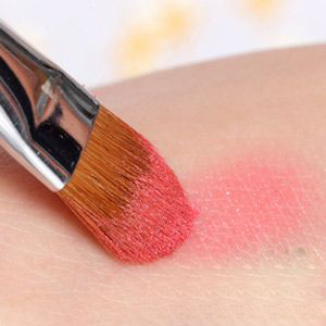 刷头沾取浅粉红后,先在手背上反覆沾掉多余粉末避免颜色过重