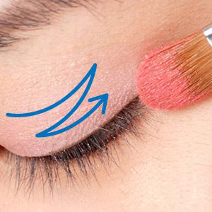 眼窝刷上浅粉红,先由眼尾往眼头,再从眼头往眼尾来回打亮,让眼皮不暗沉
