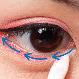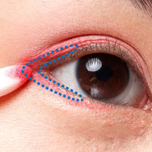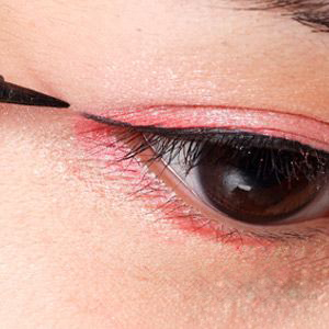 贴紧睫毛根部,在眼中→眼尾、眼头→眼中画出约1mm的细长眼线