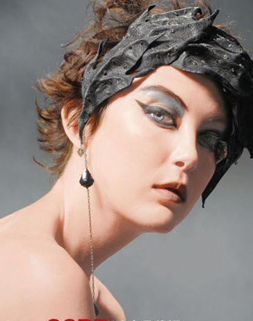 在眉骨位置涂上银色眼影,以黑色眼影及眼线扫围眼部画上眼线,并将上眼线伸延至眼尾位置,尾部向上翘起,然后再画下眼线,同样伸延至眼尾与上眼线连在一起。如画下眼线的技巧不够纯熟,可以改用黑色眼线笔,然后扫上有增长效果的黑色睫毛液。此眼妆宜配上较淡的beige色胭脂和唇膏。