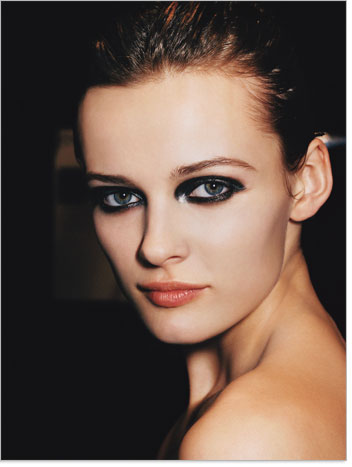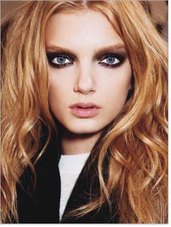 墨黑色眼线,深灰色的眼影和一头乱发, Gucci。