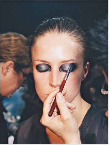 具有贪婪感的妆容和黑色的得眼妆,或者在Yves Saint Laurent得秀上,演变成黑色的唇妆。在Lanvin得秀场上,搭配了不光滑的皮肤和别到脑后的头发。我们的造型师形容这是:“带有危险色彩”的妆容。