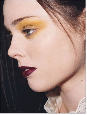 色彩带着艺术的气息回归了,你看,在眼睛和嘴唇处那些鲜艳的黄色,蓝色和粉色阴影。是不是正和我们造型师说的一样?“带有一些PUNK的味道”。