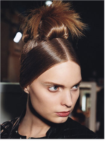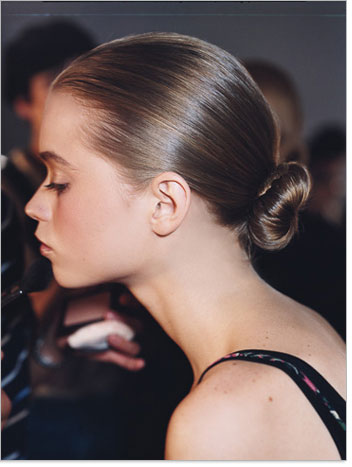“关键在于脑后头发的造型,”我们的发型师这么说道。发髻,编发,有些紧紧贴着头皮,有些又有蓬松的自然感觉,不过,关键还造型的问题。