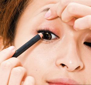 STEP.4 再次把眼皮向上撑开,用黑色眼线笔把白白的空隙补齐。完美的眼线,要100%“紧紧贴在睫毛根部”才对。