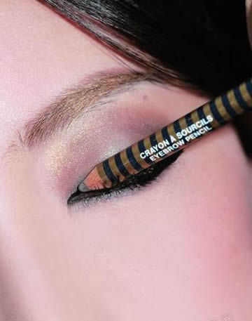 通常眼线都会从内眼角向外画,而眼角上扬的眼线要采取从外眼角开始向内描画的方法。这样更容易掌握眼线的上翘角度和下笔的力度。