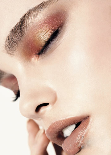 这招绝对是办公室女郎的最爱,因为不论它看起来多么闪耀,都会因整体的棕色调而不显得过于招摇。棕色眼影能放大眼睛轮廓也很低调,想要低调却不老气的秘诀是用大面积的珠光米色眼影铺底。先在眼皮涂上眼部专用的滋润产品,这会让你之后的色彩服帖且闪耀自然光泽。之后,在整个眼窝刷上米色眼影,并用深棕色的眼影填满上睫毛根部和双眼皮褶皱之间的部分,用海绵棒晕开,做好自然过渡。最后别忘记用米色眼影涂在下眼睑处,作为平衡,同时也能遮盖黑眼圈。