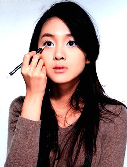 No5:用白色的眼线笔勾勒出眼睛的形状。