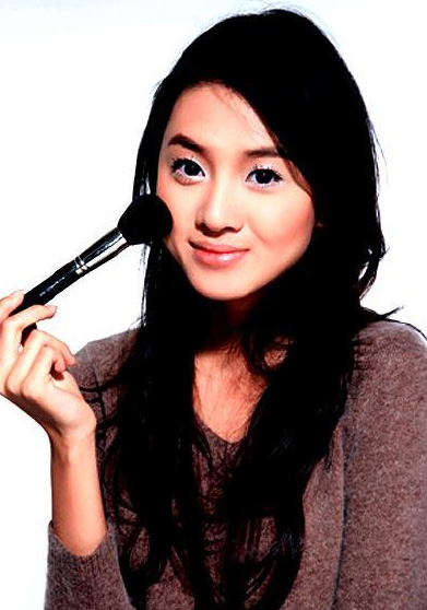 No7:用腮红刷在颧骨的位置上以打圈的方式涂抹。