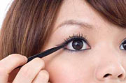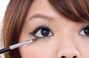 双眼皮女孩要创造大眼效果,最需要强调的是眼型的轮廓,因此,可利用色感浓黑的眼线胶将眼睛的上下内眼线都描绘上去,再特意强化眼尾的拉长线条,眼睛绝对可以无限放大。