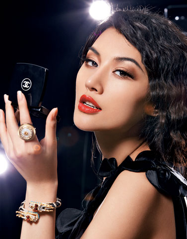 1、浓黑的弯眉:用黑色的眉笔逐渐加深眉色,眉峰要高挑,如果本身眉型平直,可以用遮瑕膏先掩盖,再重新描画一个全新的眉型。