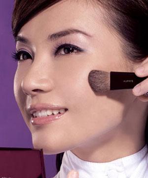 特别提示:将腮红轻扫在鼻尖与耳垂下部的延长线上方,可以令整个妆容显得年轻而充满活力。